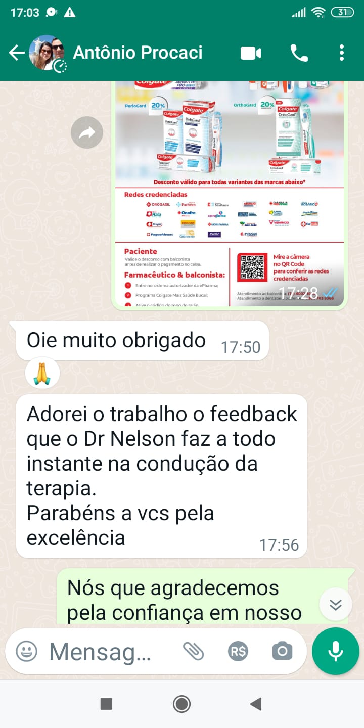 Dr. Nelson muito obrigado pelo profissionalismo, não imaginava o quanto eu ficaria satisfeito com esse tratamento, ter segurança para sorrir, falar e comer nos restaurantes com os amigos é muito bom. Mudou minha vida!